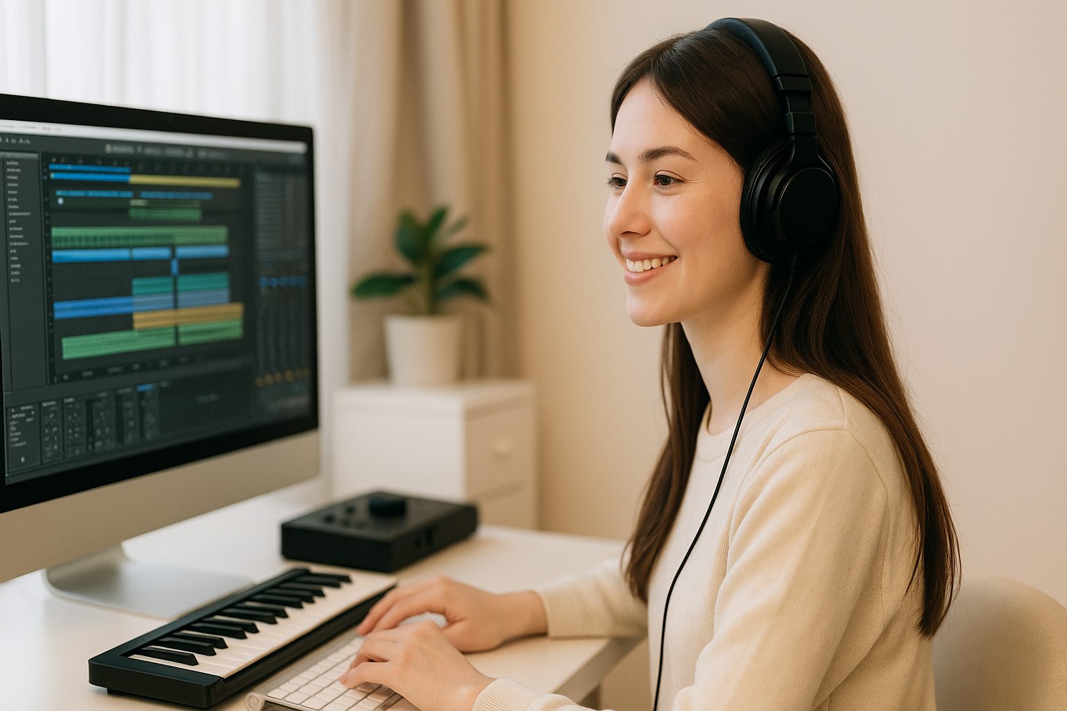 さらにヘッドホンを使えば、周囲の環境に左右されずに安定した音で作業できる ので、初心者が自分の耳を鍛えるにも最適です。音量の調整も簡単で、深夜でも安心して作曲に集中できます。